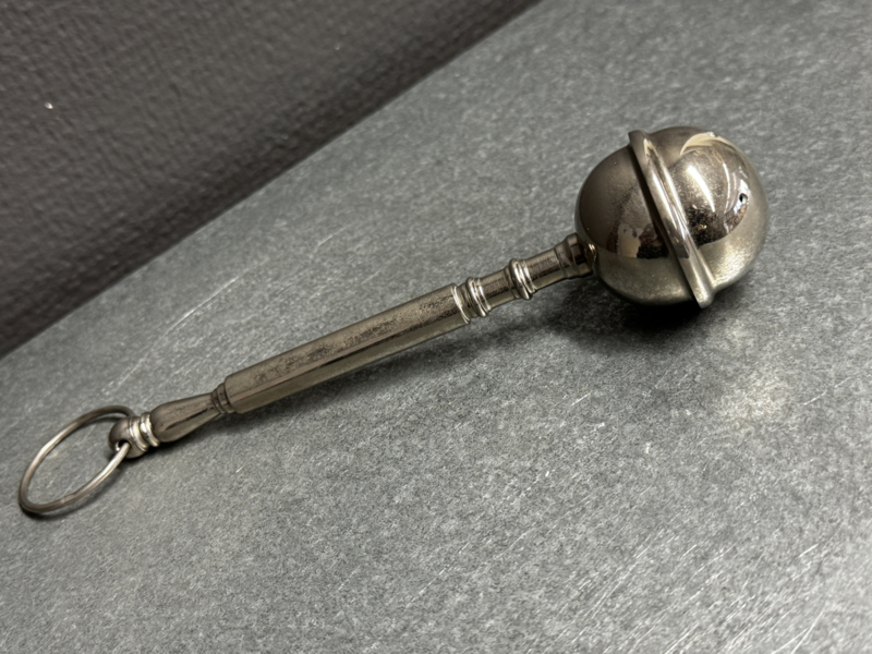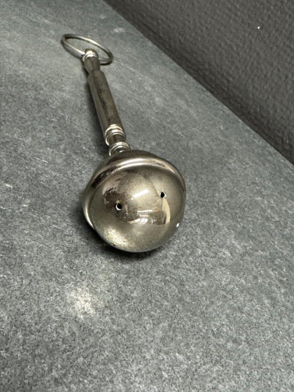 OverzichtDeze elegante wijwaterkwast van nikkel is een prachtig voorbeeld van klassiek kerkelijk vakmanschap. De kwast heeft een glanzende bolvormige kop met kleine openingen, waarmee het wijwater fijn wordt verspreid tijdens zegeningen, processies of huiswijdingen.