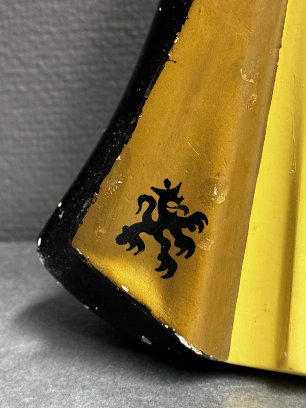 De gele en zwarte kleuren verwijzen naar de Vlaamse leeuw, waarvan twee heraldische leeuwen zijn afgebeeld op de mantelzoom. De combinatie van religieuze symboliek en regionale trots maakt dit beeld tot een uniek voorbeeld van naoorlogse devotiekunst.