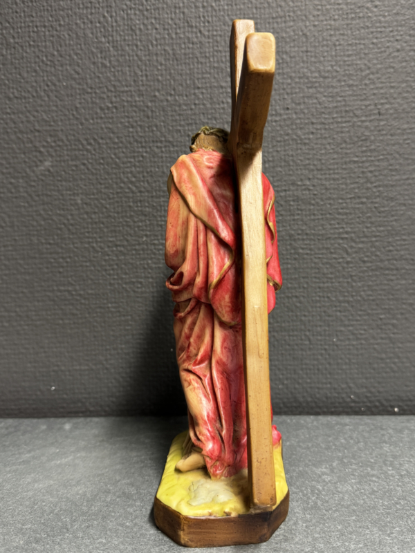 Beeld van Jezus met kruis – handbeschilderd verzwaard resin ca. 1970
