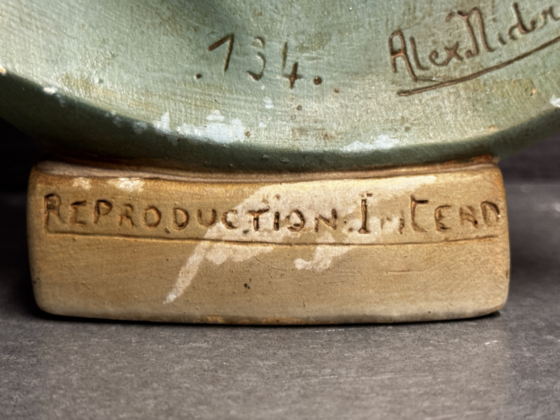 De beeldengroep draagt de signatuur Alex Andrione en is aan de achterzijde gemerkt met Reproduction Interdite en het nummer 134, wat wijst op een beperkte en beschermde oplage uit de midden 20e eeuw.